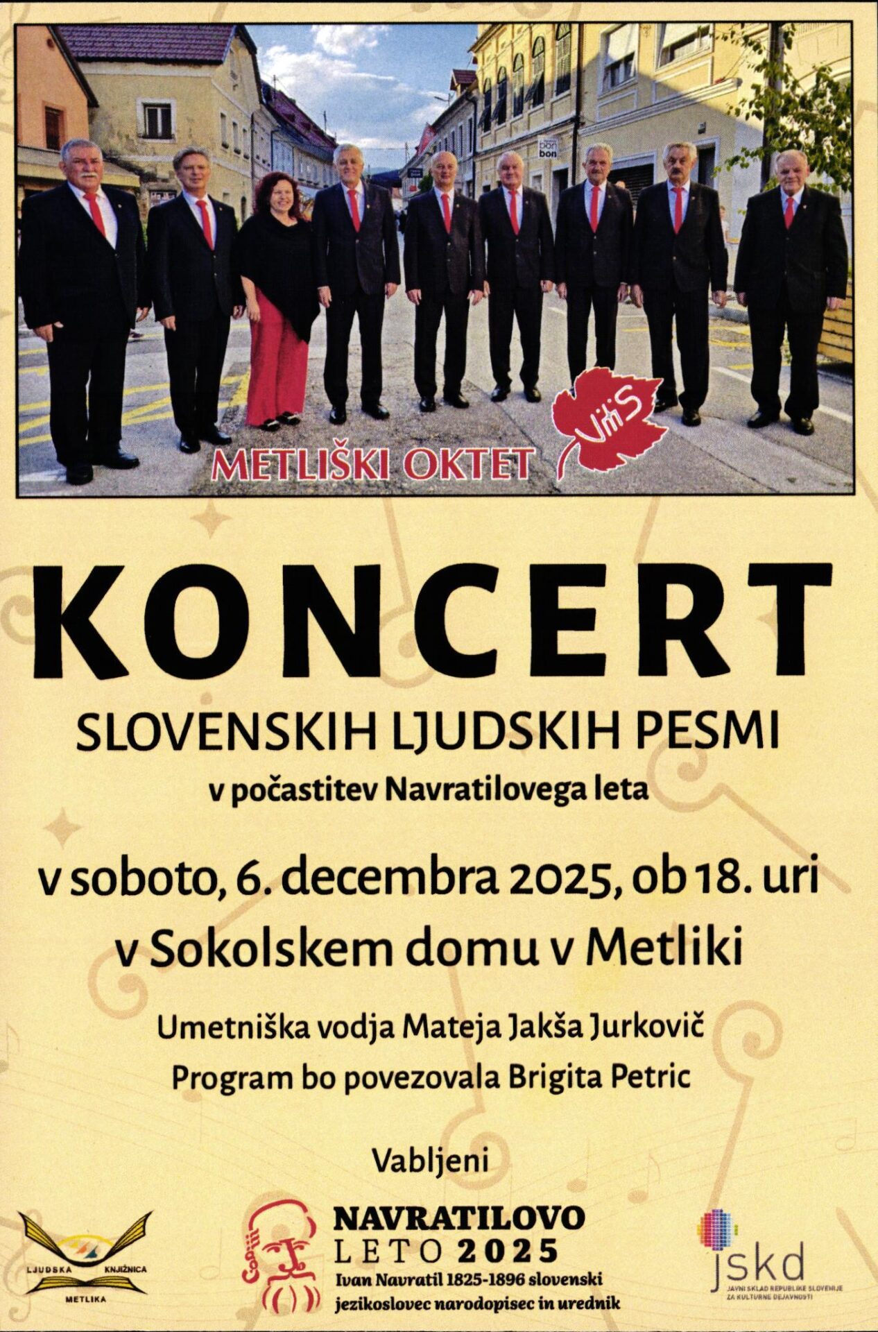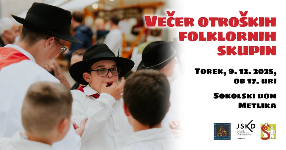 Folklora med mladimi še živi! Na večeru mladih folklornikov bo nastopilo približno 100 otrok različnih starosti. Zapeli bodo ljudske pesmi ter zaplesali belokranjske ljudske plese ob spremljavi harmonikarjev. 𝐋𝐞𝐩𝐨 𝐯𝐚𝐛𝐥𝐣𝐞𝐧𝐢 𝐧𝐚 𝐕𝐞𝐜̌𝐞𝐫 𝐨𝐭𝐫𝐨𝐬̌𝐤𝐢𝐡 𝐟𝐨𝐥𝐤𝐥𝐨𝐫𝐧𝐢𝐡 𝐬𝐤𝐮𝐩𝐢𝐧! 𝐓𝐨𝐫𝐞𝐤, 𝟗. 𝟏𝟐. 𝟐𝟎𝟐𝟓 𝟏𝟕.𝟎𝟎𝐒𝐨𝐤𝐨𝐥𝐬𝐤𝐢 𝐝𝐨𝐦 𝐌𝐞𝐭𝐥𝐢𝐤𝐚 Sodelujoči: Otroška folklorna skupina Ivan Navratil Metlika in OŠ Metlika Starejša folklorna skupina OŠ Metlika Mlajša folklorna […]